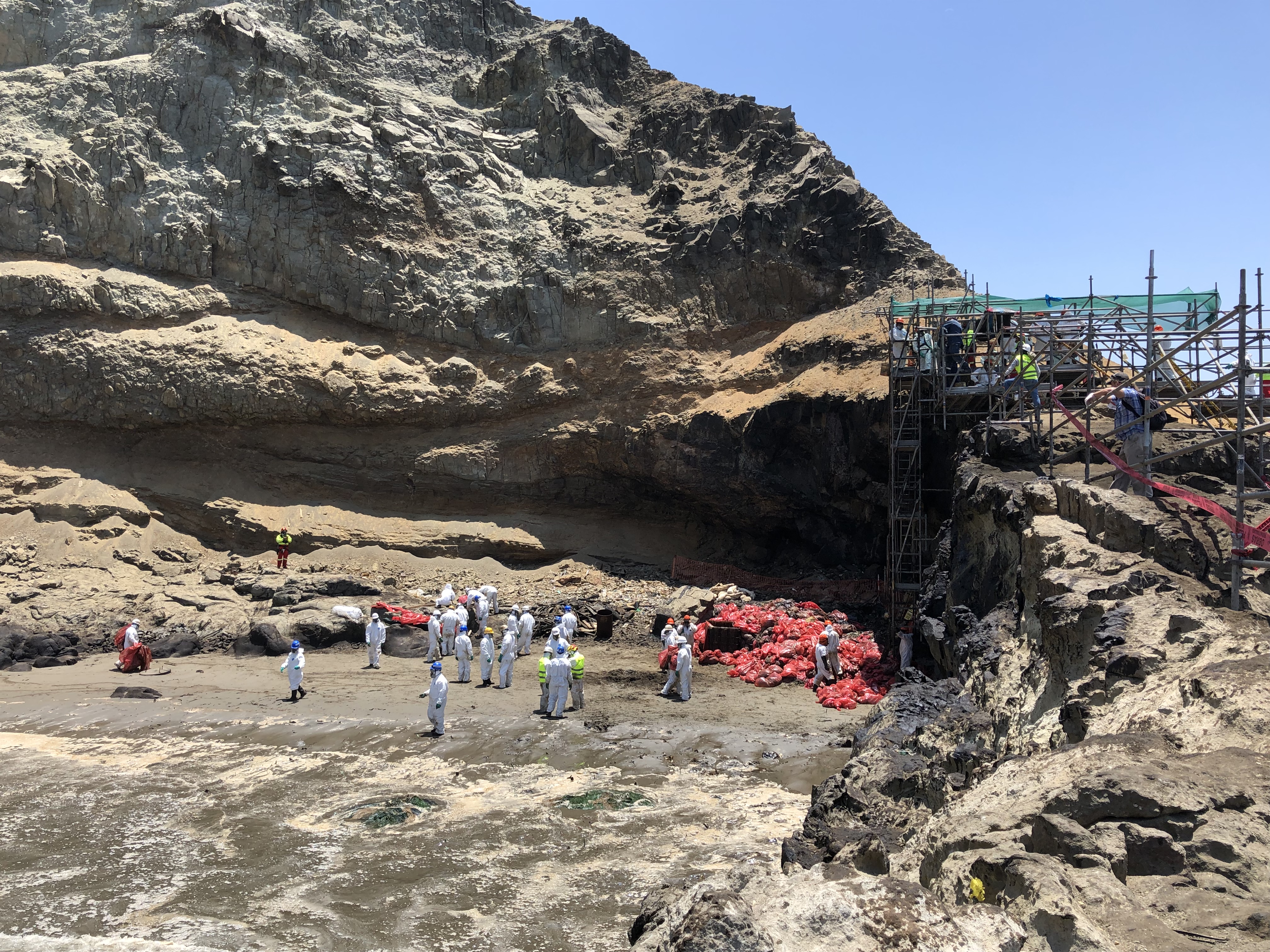 OR&R represents NOAA on the U.S. National Response Team, a network of 15 federal agencies that provides guidance, assistance, and resources for managing pollution incidents. The team mobilized a nine-person team of six U.S. Coast Guard National Strike Force members, two NOAA oil spill response specialists, and one U.S. Fish and Wildlife Service animal care specialist. National Response Team members are participating in coordination and integration meetings with staff from the Government of Peru, the U.S. Agency for International Development, the United Nations team, International Maritime Organization, Coast Guard of Peru (Direccion de Capitanias y Guardacostas, DICAPI), the spill response nongovernmental organization ITOPF, and members of the responsible party’s Incident Management Team.