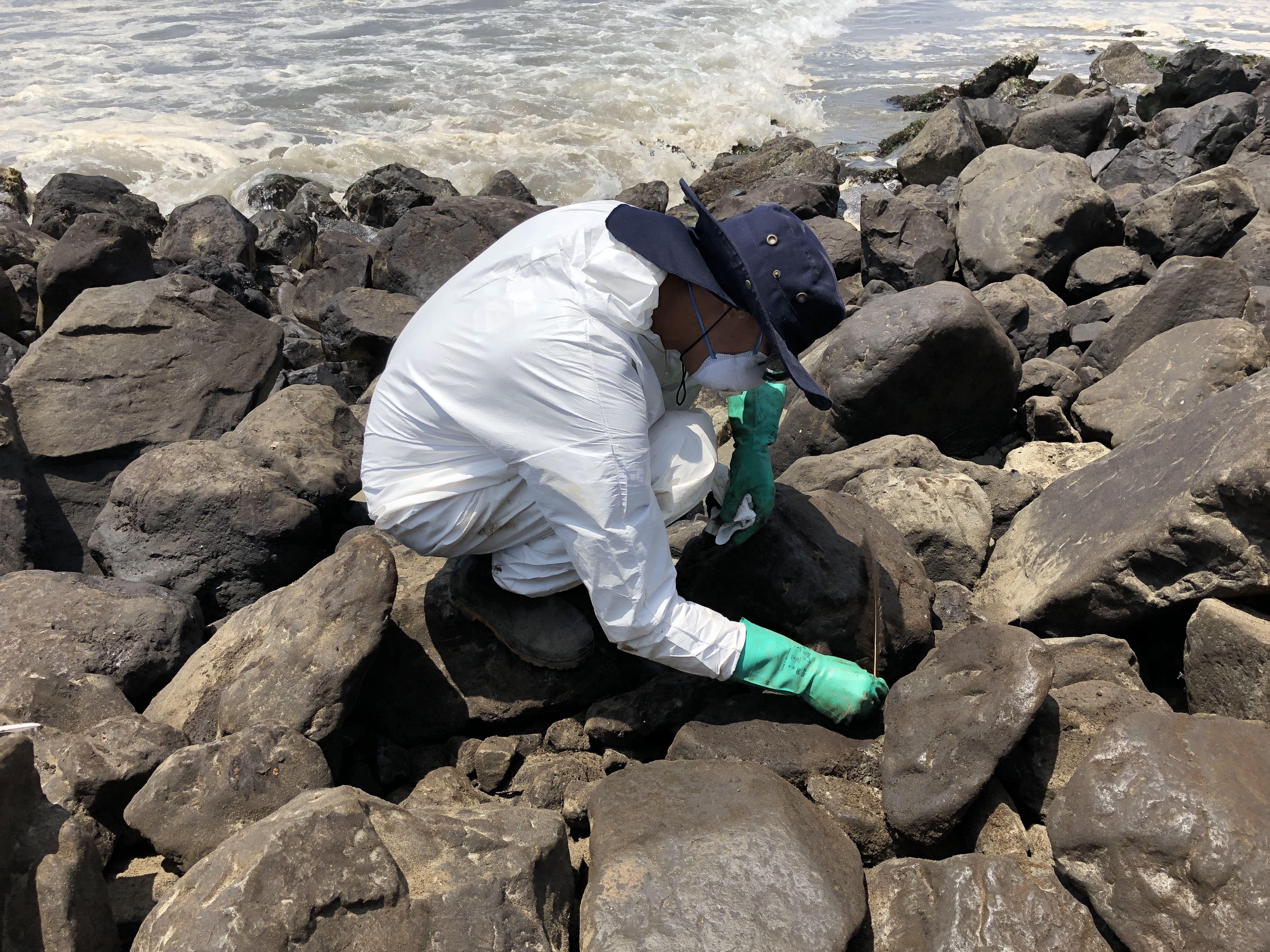 Since the OR&R specialists were able to be on scene, they could view the oil behavior, weathering, and level of oil/water emulsification (a mousse-like oily froth), and view and photograph the oil characteristics and behavior on the shorelines. An OR&R specialist participated in an aerial overflight to observe oil conditions on the water and to help map the extent and severity of oil contamination along affected areas of shoreline. NOAA’s work is helping Peruvian authorities focus clean-up activities and interventions, and assess the threat the oil may pose to biological and human-use resources.